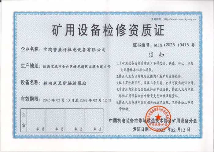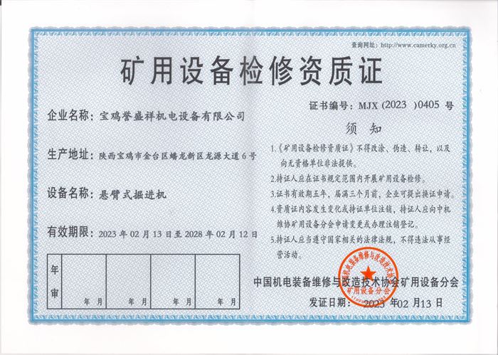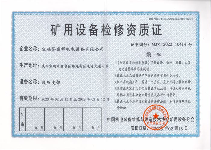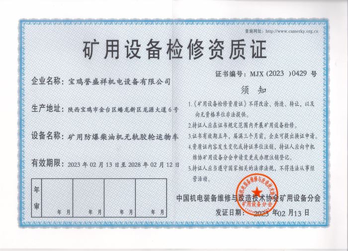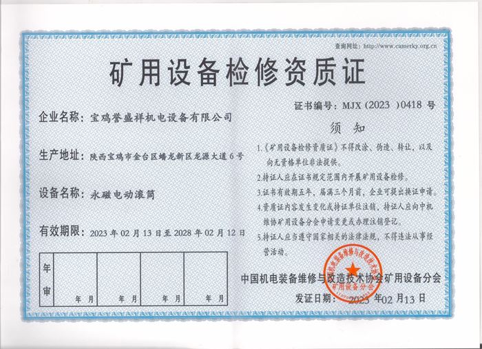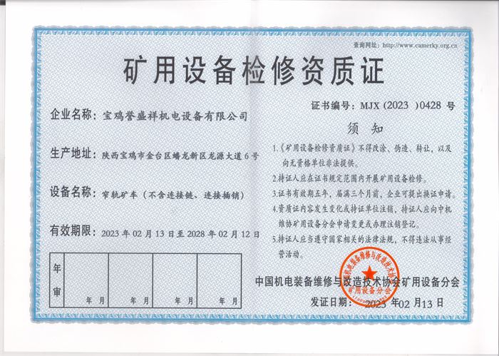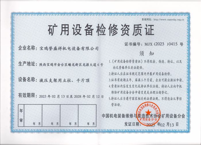 寶雞譽(yù)盛祥機(jī)電設(shè)備有限公司成立于2013年6月,注冊(cè)資本6000萬(wàn)元,占地15000余平方米,位于寶雞市蟠龍新區(qū),交通方便,地理位置優(yōu)越?,F(xiàn)有員工30余人,主要設(shè)備20余臺(tái),是寶雞市及周邊地區(qū)專(zhuān)業(yè)從事礦機(jī)配件生產(chǎn)及工礦機(jī)械維修的企業(yè),有32種礦用設(shè)備維修資質(zhì)及15種托輥生產(chǎn)煤安資質(zhì)證書(shū),是寶雞市應(yīng)急管理局招商引資和重點(diǎn)幫扶企業(yè)...